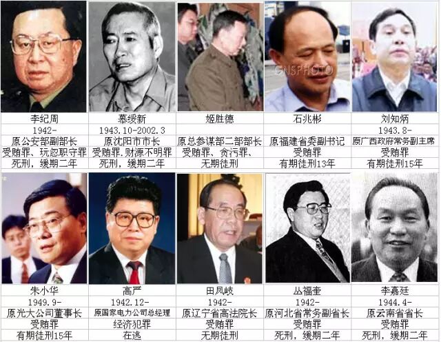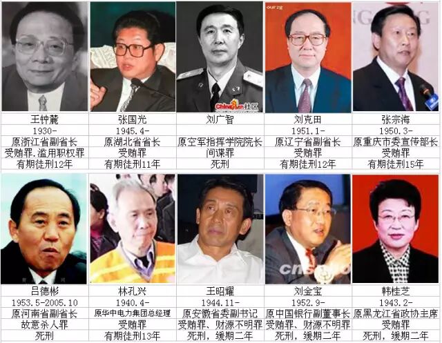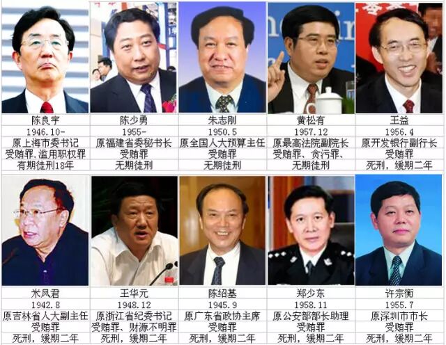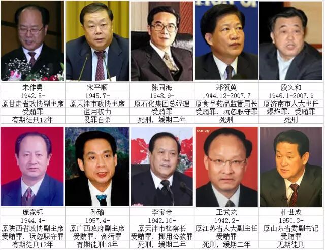 以往,貪污萬元便是大案要案,貪污百萬便是巨貪,不槍斃也要判個無期;而今貪污罪款數字巨大,動輒千萬,甚至上億,如:廣東中銀開平支行原行長余振東貪污40億;廣東中山市實業發展公司原負責人陳滿雄4.2億;中共重慶市委常委原宣傳部長張宗海2億;湖北省政府駐港辦事處原主任金鑒培1.88億;雲南紅塔集團原董事長諸時健1.8億;廈門海關原關長楊前線1.6億;今年落網的原海軍副司令員王守業1.6億;還有最近被「雙軌」的上海原社保局局長祝均一涉嫌非法動用社保基金32億!