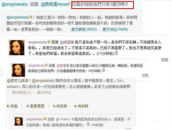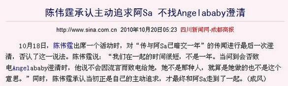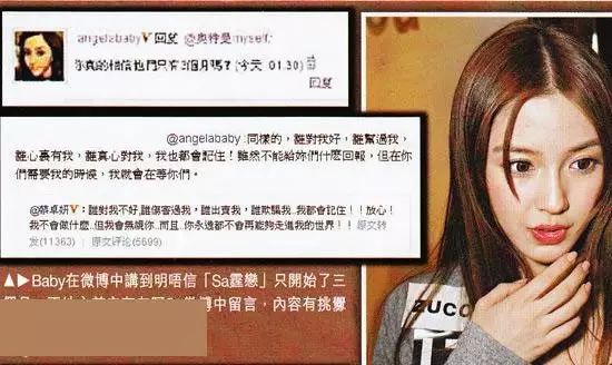 後來,阿Sa和陳偉霆在2010年10月份公開戀情時,baby還諷刺阿sa是小三。