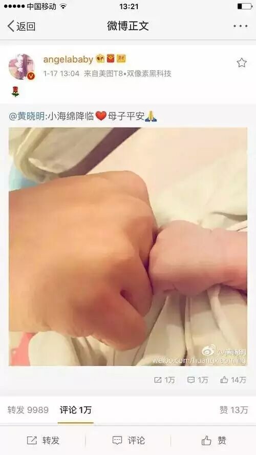 Baby在香港順產生子,黃曉明及雙方家人都提前抵港並全程陪護母子左右。寵妻狂魔黃曉明從此又要多寵一個人嘍,祝福AH夫婦!
