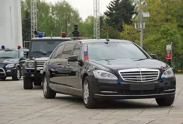 保鏢們全副武裝,警衛局的車隊也是大有文章。總統出行時,車隊由護衛車、開道車等保衛車輛以及3輛一模一樣的黑色賓士防彈轎車組成,這3輛中只有一輛是普京的座車。根據俄羅斯官方公布的資料顯示,普京的陸上座駕其實是加長版賓士S600,價值超過千萬,專為政府首腦等高層定製,擁有最高級別的安保設施。它體積龐大,全長6.2米,總重約30噸,裝備了6升400馬力的V12發動機,僅裝甲就重達5噸。