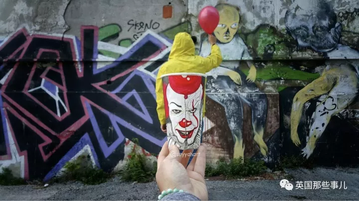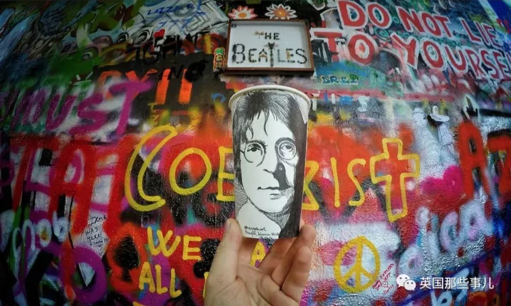 除了地標和風景,還有很多創意紙杯,如披頭士紀念牆邊,列儂...