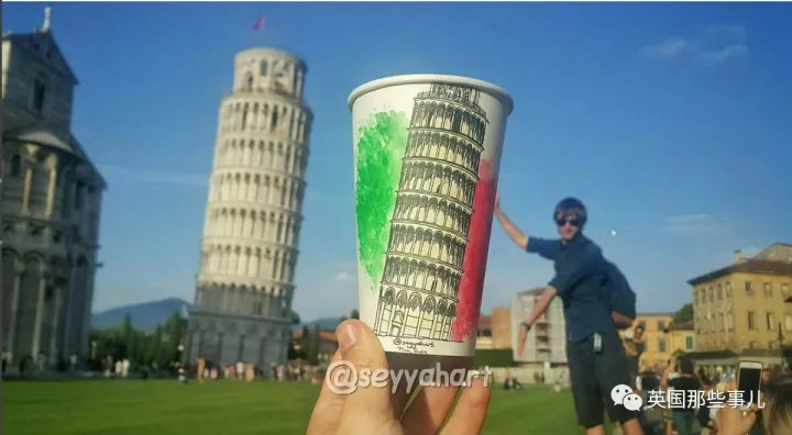 他就這樣一邊畫著紙杯,一邊周遊著各地,留下了許多別緻的紀念……