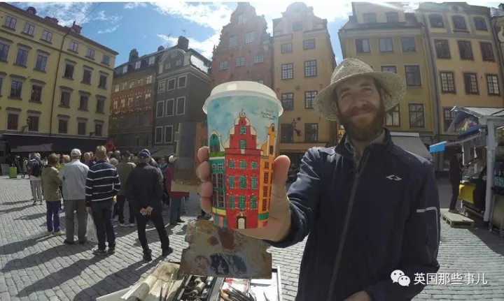 於是,他拿定主意,每到一個地方,就靠畫紙杯賺錢來支撐自己的旅行...