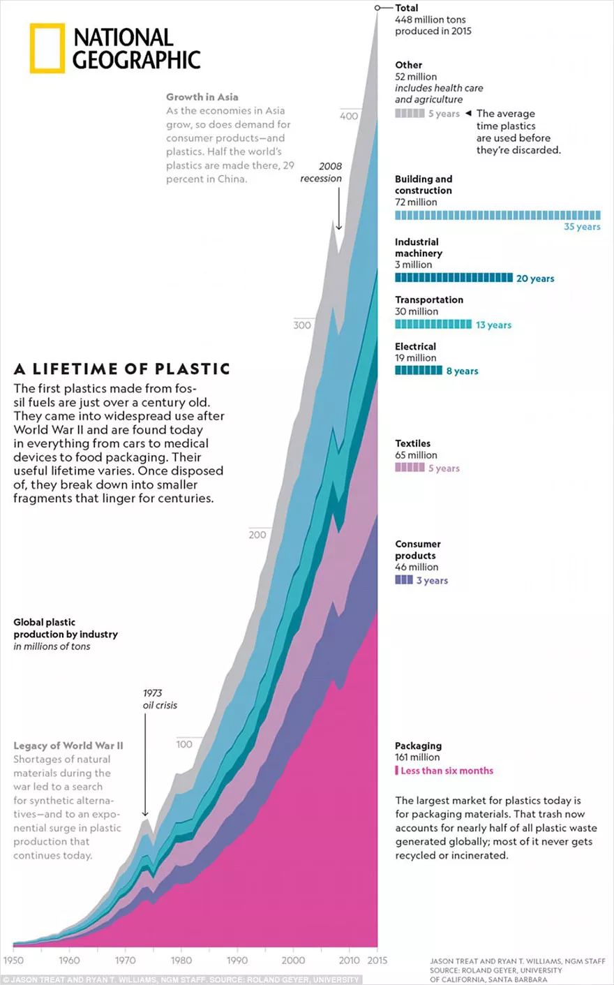 截至2015年,全球已產生超過69億噸塑料廢物。其中僅約9%被回收,12%被焚燒,79%被填埋或繼續在環境中積累。