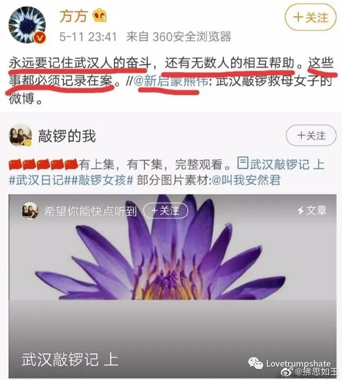 方方又被咬了一口。這次咬她的,竟然是那個在陽台上敲鑼救母的女子。那絕望的鑼聲、悲傷的嘶喊到現在我還記得,沒想到她自己已經忘了,施施然註冊了微博,昵稱就是「敲鑼的我」,加了V,縱身一躍加入了討伐方方的隊伍。
