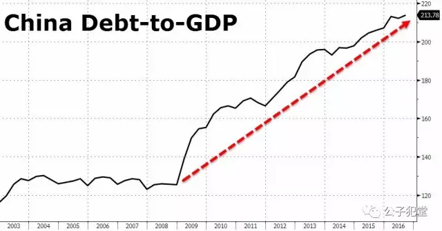 據IMF保守估計,中國的非金融部門債務在五年後將超過GDP的290%,其中僅在2016年國企債務就已經高達94萬億人民幣以上,每年增速遠超過GDP增速。