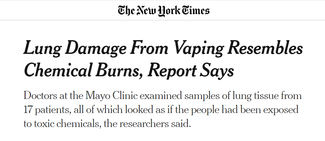 2019年10月2日,《紐約時報》在另一篇報道中詳細介紹了電子煙疾病的病例。