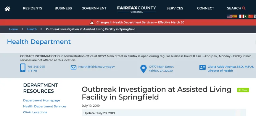 弗吉尼亞州費爾法克斯縣衛生局官網