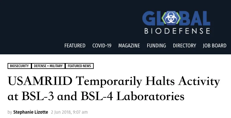 2019年7月,位於德特里克堡的美國陸軍傳染病醫學研究所被關閉;