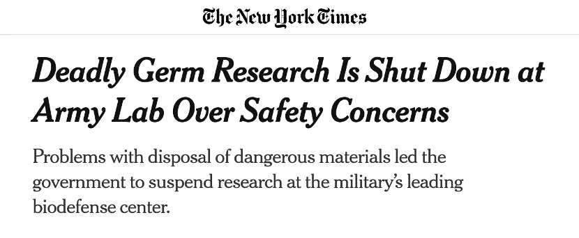 《紐約時報》2019年8月5日報道稱:安全堪憂,美軍實驗室致命細菌研究被關閉
