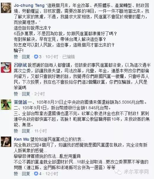 另外,針對蔡英文聲稱要擺脫對大陸依賴,形塑正常經濟關係云云,有人質疑:你不是要「維持現狀」嗎? 天天只負責鬼扯。蔡英文表示要「力抗」大陸,更讓網友擔心:是要放棄「維持現狀」,重回兩岸對抗了嗎?」