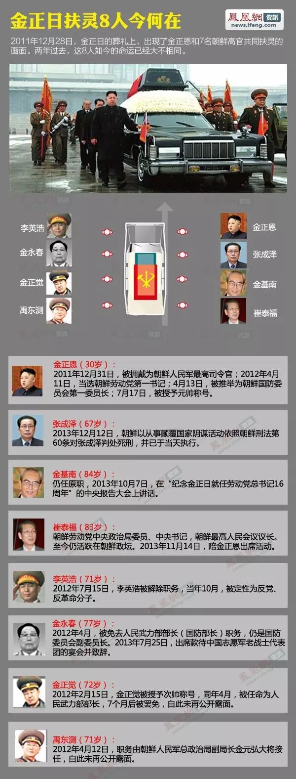 張成澤:金正恩姑父,朝鮮勞動黨中央政治局委員、朝鮮國防委員會副委員長、勞動黨中央軍委委員、勞動黨中央行政部部長。