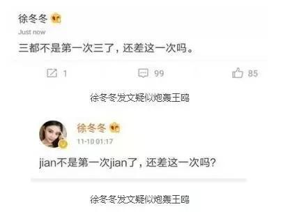 徐冬冬發微博疑似炮轟王鷗不是第一次插足別人的感情······
