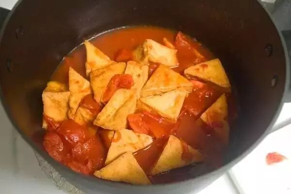 ▼加水,中火煮10分鐘,至番茄熟透,湯汁變濃。