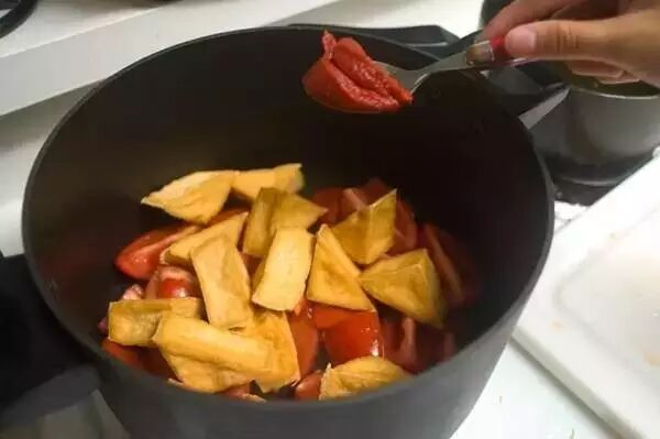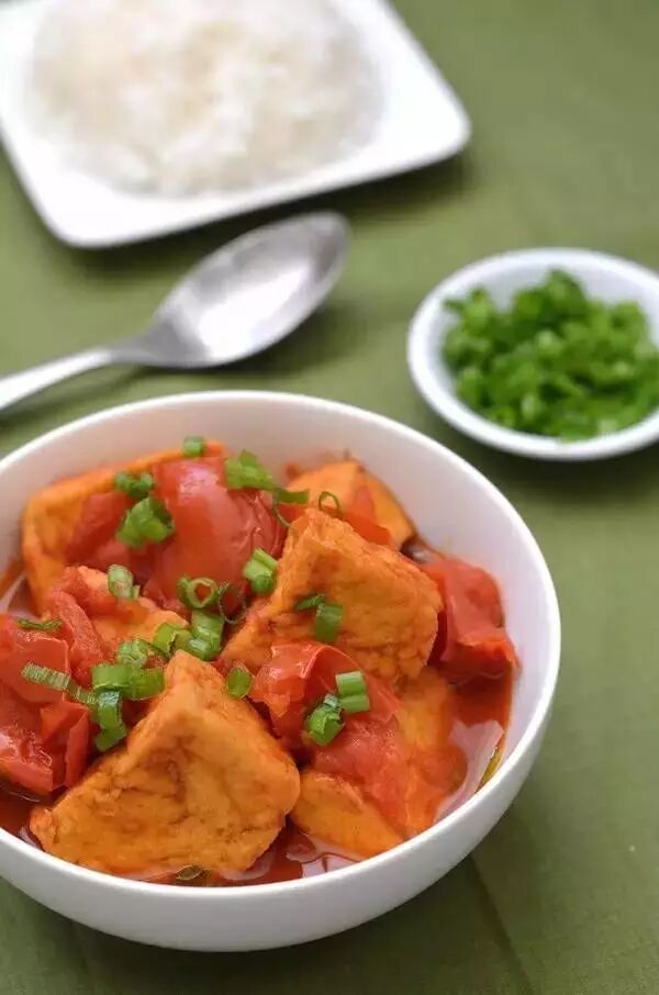 嫩豆腐或油豆腐450g,番茄5個,番茄醬1勺,鹽1茶匙,白砂糖1茶匙,水300ml。