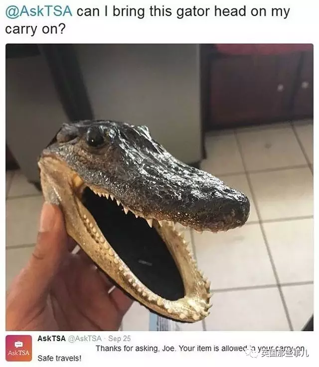 真的可以!他們還開有一個叫@AskTSA的賬號,專門回答網友「這個能不能帶上飛機的問題」