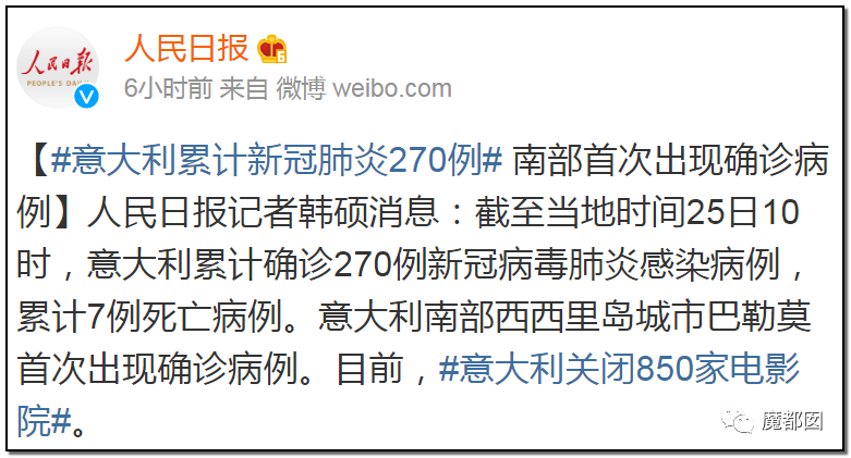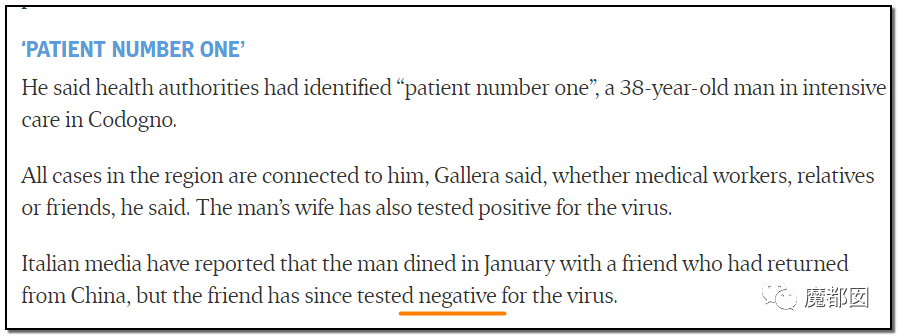 很明顯,不是我們傳的,那麼義大利呢?根據外媒報道,義大利的「1號病人」已經明確。