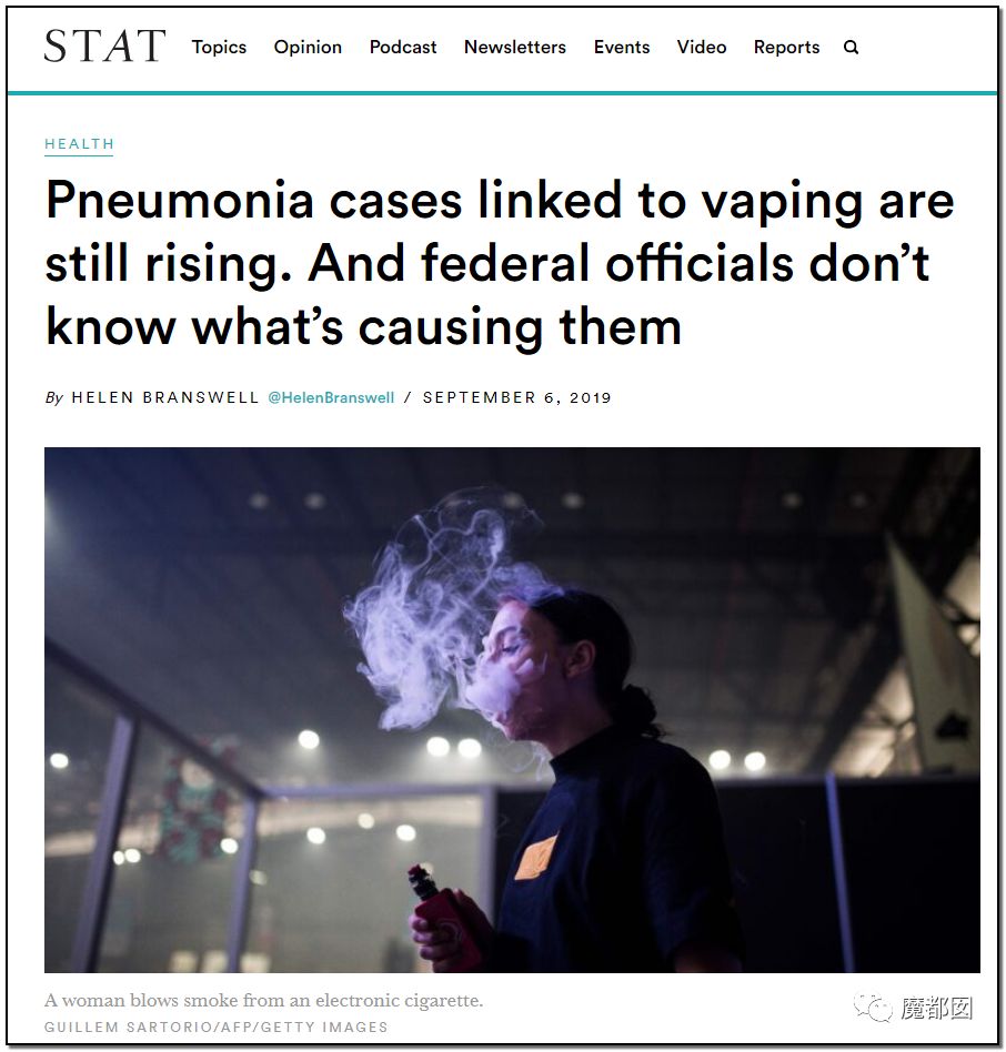 「與電子煙有關的肺炎病例仍在上升。而聯邦官員不知道是什麼原因導致這些產生。」國內也有報道: