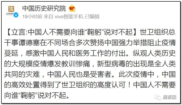 當然,最後我們還是重申,不能簡單下結論說新冠就是美國傳出來,或者是美國控制不力的結果,這個還需要科學的證實,未來可能還需要一個很漫長的過程。但是至少,現在可以對全世界說一句:我們中國人,真的不欠你們!