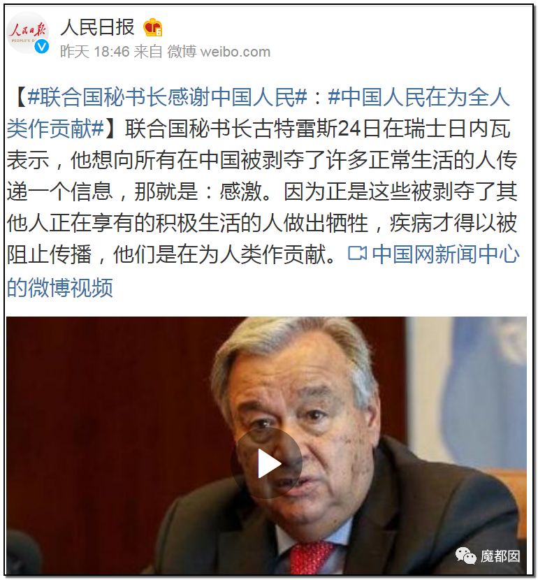 也就是說,新冠在美國已經不是會不會流行的問題而只是一個時間的問題。結合美國的這個情況,再看看我們,聯合國秘書長真心誠意講了一番話,這個並不是面子話,而是發自肺腑,中國給全世界都做了一個好榜樣,中國人民給全世界都樹立了一個好榜樣!