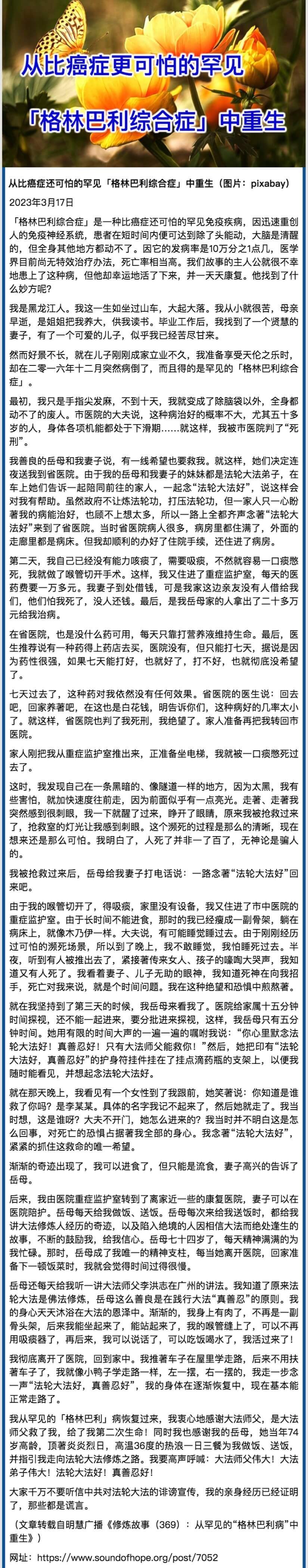- 我們的親身經歷見證了法輪大法的奇迹(1 ,2) [2023/03]