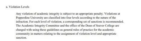 任何違反學術誠信的行為都將受到適當的處罰,佩珀代因大學根據違規的性質分為四個等級違規處罰。