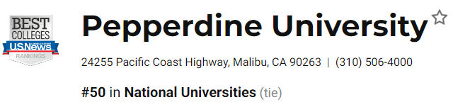 在2020年USNews美國大學排名中,佩珀代因大學排名第50。