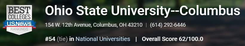 在2020 US News美國大學排名中,OSU位於第54。