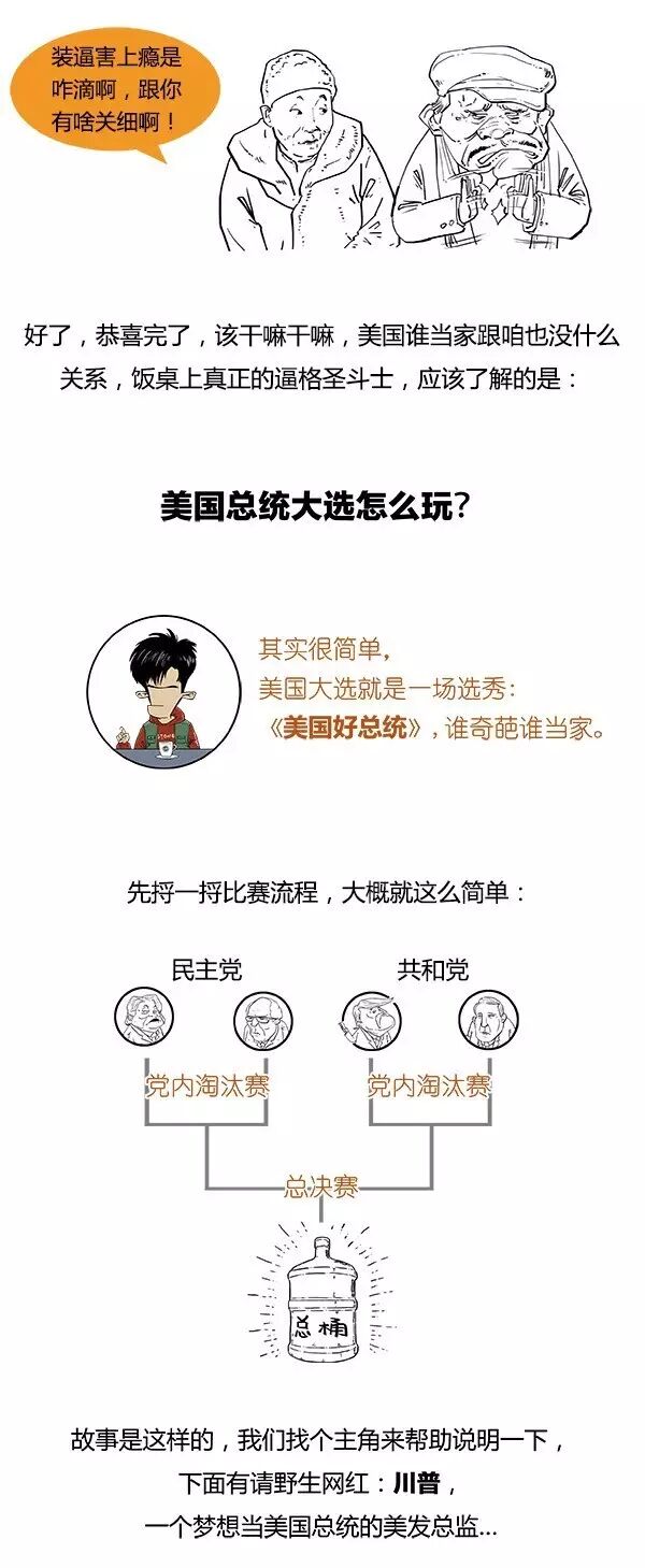 大選的流程咱們就大概說完了,可是我知道你們讀書少,即便講到這個程度也還是聽不明白,於是混子哥決定給大家一個福利: