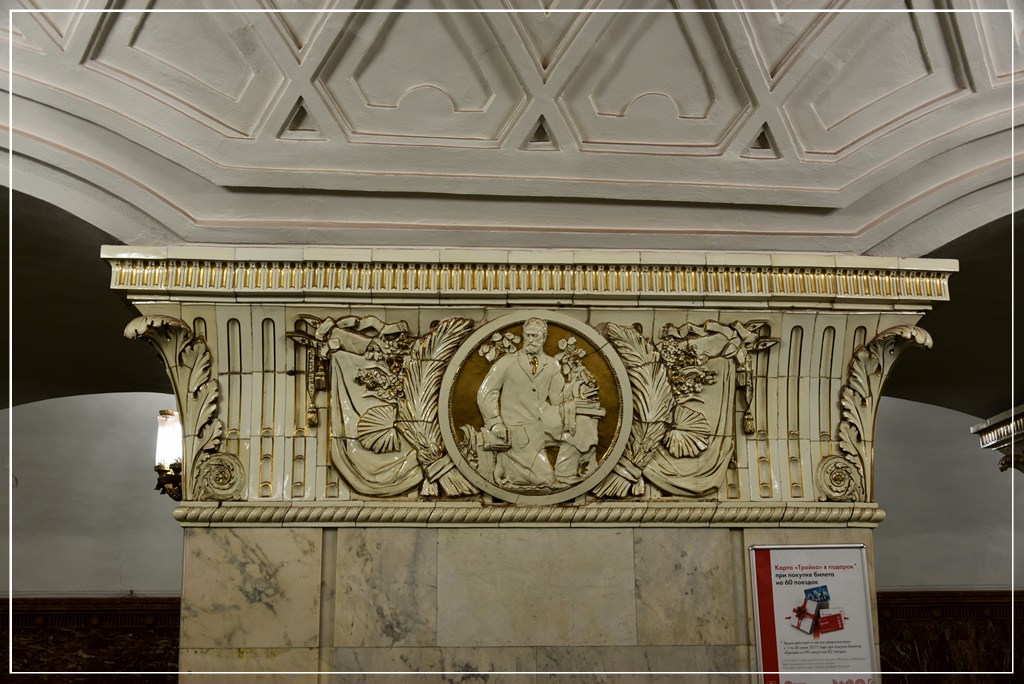 國家歷史文化保護紀念碑/馬亞科夫斯卡婭站 1938年9月11日開通,建築師:A. 杜希金/Y.里提騰伯格,藝術家:A. 德涅卡/M.V.弗洛洛夫,施工主任:E.阿巴庫莫夫/I.果斯里則(股溝翻譯)