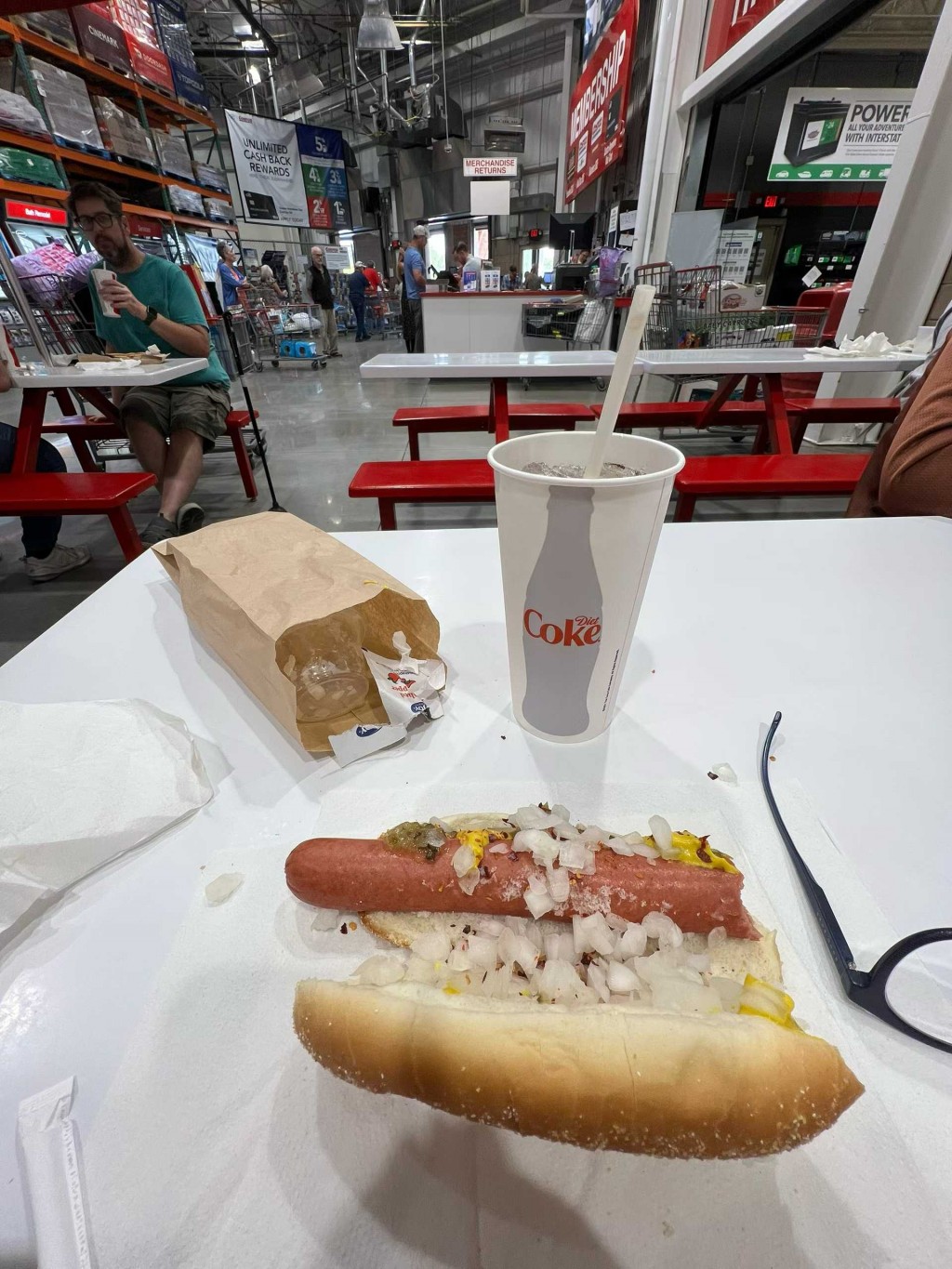 一早起來送二老板去趕校車。已經晚了三分鐘了,俺的車鑰匙找不見了,只好抓起大老闆的車就走。還沒出小區,屏幕就提示右後輪癟了。硬著頭皮慢慢走吧,幸好早上車不多,校車趕上了。去辦公室把早上的事情處理一下,讓大老闆把電打氣送來,然後就來卡死摳補胎。胎是在卡死摳買的,免費補。等待時沒事幹就上個熱狗吧,很久沒吃了,還是宇宙最合算的價格,1.5米可樂免費續杯不限量。雖然有點早,管不了那麼多了。