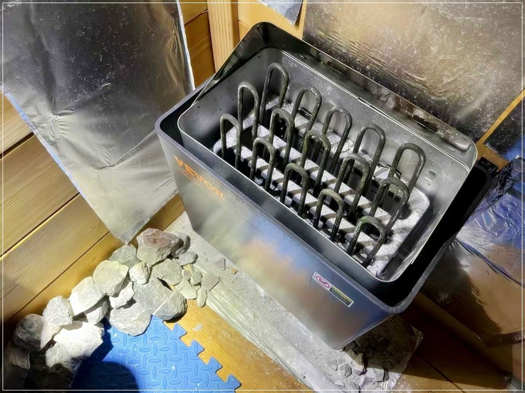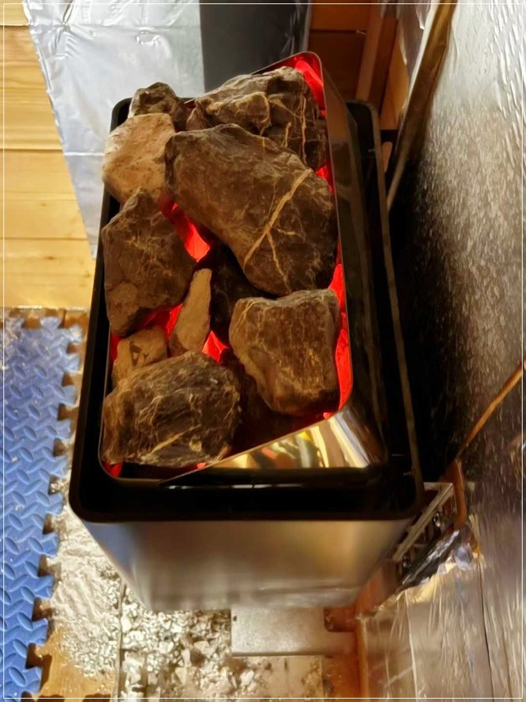 上次買的石頭看樣子質量不咋地,不少已經被高溫烤成碎末了。總體來說桑拿比按摩池運行費用少很多。