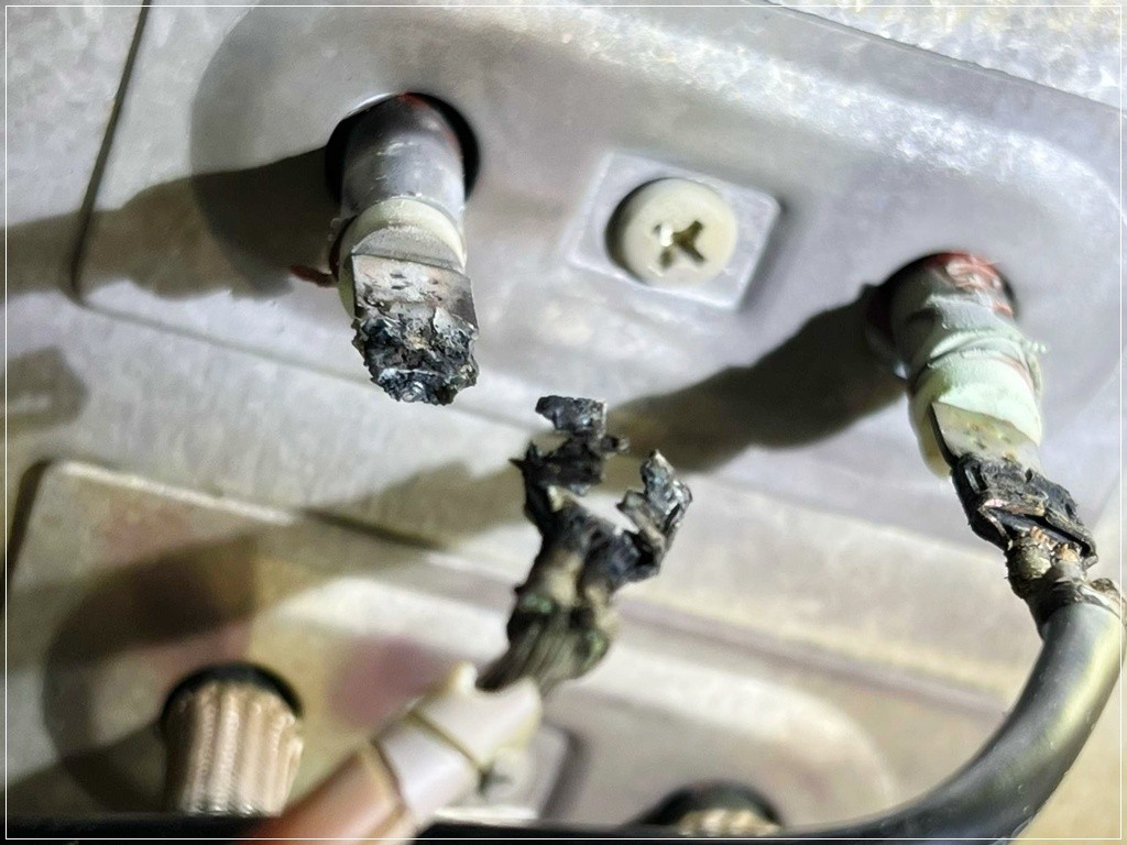 換了線試車,舊電熱管照樣亮,就是接頭熔斷了,俺下面的蓋板就不裝回去了,那樣應該溫度不會高到熔斷接頭。試試看吧。