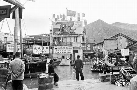 1970年,香港大嶼漁村慶祝中華人民共和國成立21周年的宣傳畫和彩旗。從1949年開始,這裡的人們每年都要集會慶祝國慶。