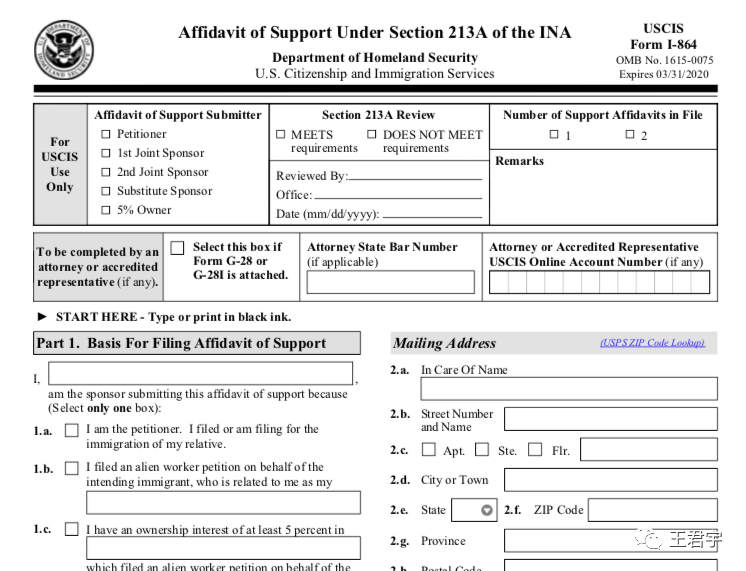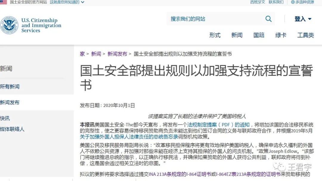 十月一日,美國國土安全部(DHS)提出新規則以加強移民擔保人(美國公民、合法永久居民 )的經濟擔保書(I-864表格)的審查程序。並要求擔保人提供其信用報告和信用評分、最近三年的所得稅申報表以及銀行帳戶信息,以有效證明有維持所需收入的經濟能力。川普政府希望進一步篩選擔保人的信用評分及納稅申報表等來衡定其擔保資格。 移民局官網 這項新規則旨在加強對親屬移民擔保人的能力的審查,並加大了親屬移民的難度。去年川普簽署的一項總統備忘錄里顯示:對於擔保人是否曾領取過公共福利也應包含在審查範圍內。也就是說,如果擔保人在36個月內領過公共福利,那麼擔保任和被擔保任則另需要一個共同擔保人,因為擔保人的經濟能力可能會因領取過福利而受到質疑。 2020貧困準則 I-864表格也稱經濟擔保書,是為了證明移民受益人(被擔保人)有足夠的經濟保障並且在在未來不會對美國社會造成公共負擔。因此此表格是所有親屬移民和小部分職業移民的必備條件。而之前對經濟擔保的要求並不是如此嚴格,一般不會追究擔保人曾使用的公共福利(如糧食券、醫療白卡、住房補貼等)但未來情況看似會改變。I-864表格 這項新規則將會很大程度上增加了擔保風險,提高了擔保資格的門檻。同時親屬移民的難度和審查程序也會隨之加大。所以在新規則正式生效前,王律師建議大家儘快辦理移民。此外,就連同親屬移民也越來越難了,那麼您更需要一位移民律師為您提供專業指導,找出應對當前新規的最佳解決辦法。自己辦理身份的成功率無法得到保障,請律師幫您才是最安全的一步棋。 王君宇律師樓Line ID ☞ 7183539264專精各種疑難案件:移民,刑事,告警察/政府。我們有最優質的服務,最專業的律師和助理團隊。王君宇律師服務華人社區十幾年,幫助無數客人打消遞解令獲得身份。為無數客人在刑事辯護中獲得最好的結果。王律師一直走在法律的最前線,王律師總是能洞悉新的法律信息從而給予客人最好的幫助。