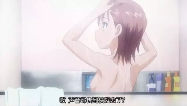 炮姐是平胸界的代表人物是不,但其實從這張圖來看,雖然不大,也絕對不能說沒有胸。炮姐在動漫里的福利場景不多,這淋浴畫面也是彌足珍貴,雖不如正面衝擊力大,有美背看也不錯啦~