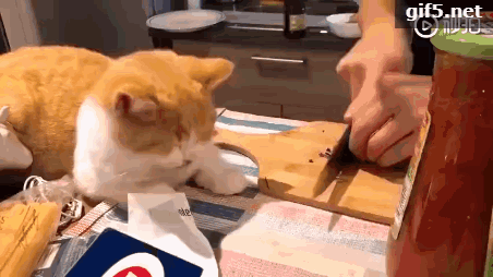 在切洋蔥的時候這喵非要在旁邊盯著…