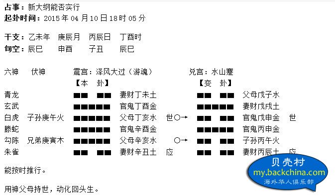 本帖最後由 老葉子任飄零 於 2015-7-14 21:12 編輯 安省新教育大綱含過分性教育內容 區先生佔得此卦。從卦上看,我認為依然可以通過執行。