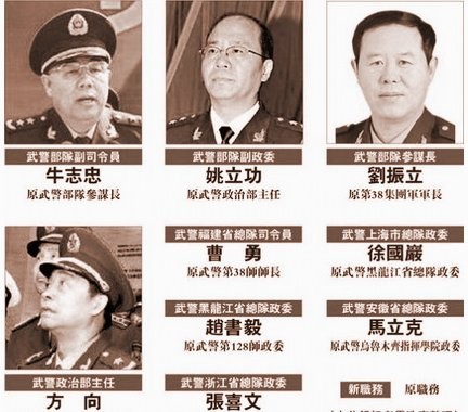近日,中共武警總部和6大地方武警總隊的高級將領被調整,這是習近平繼去年年底把武警總隊高層雙雙換人後的又一大舉動。(網路圖片) 近日,中共武警總部和6大地方武警總隊的高級將領被調整,這是習近平的又一大 ...