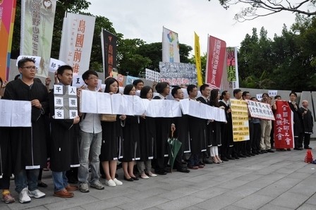 針對中共近期瘋狂打壓、逮捕200多名維權律師,台灣30多位律師代表及多個民間團體20日中午在總統府前白色恐怖政治受難者紀念碑前集合,舉行「聲援中國人權律師」記者會。 台北律師公會理事長黃旭田表示,作為一個 ...