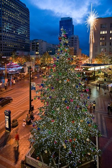 在過去的23年裡,西雅圖每年都是用花旗松或者銀杉來當做聖誕樹,但是今年這座別名「綠寶石之城」的城市為了可持續發展將會選用人造樹。多彩的燈和裝飾物覆蓋在假樹上,其頂端有顆白色的星星。
