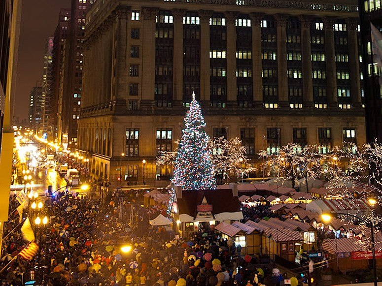 今年是芝加哥假期傳統慶典活動的第九十九年。第一個聖誕樹於1913年在格蘭特公園被點亮,這棵樹來自於芝加哥100英里(約為161公里)開外的河套地區,之後點亮儀式便於1966年更改至戴利廣場。今年的科羅拉多雲杉將會被裝飾上一萬四千六百多盞五顏六色的彩燈。