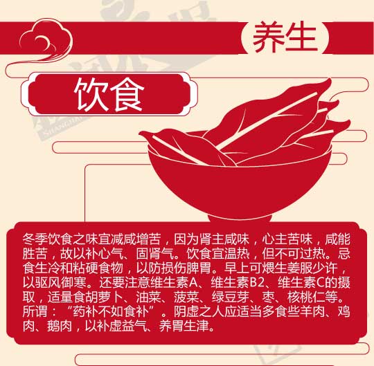 冬季氣溫低,人體需要比平時更多的熱量,以產生更多的能能,適應機體的需要。這時應重視食補與葯補。