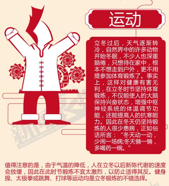 冬日運動,是對付寒冷的積極措施。合理的運動,可提高臟腑器官的功能,增強人體免疫功能和對外界寒冷刺激抗禦能力。