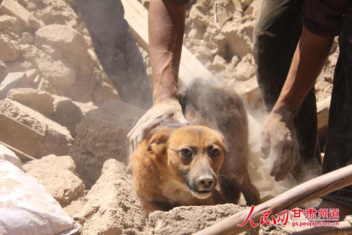 2013年7月23日,「它被埋在廢墟下31小時竟然還活著,真是一個意想不到的驚喜」。甘肅省岷縣禾馱鄉永興村四社村民張蛇生說。只見一隻可愛的小黃狗(小黃)在他身邊跳來跳去,時不時還會往他身上蹭。定西7月22日地震時張蛇生一家都跑了出來,家裡的房屋倒塌了,在大門旁偏房下的小黃被埋在了廢墟中,當時張蛇生及家人還專門過去看了一下,它一聲沒叫,大家都以為它被壓死了。圖為探出頭的小黃狗期待地看著救他的人。
