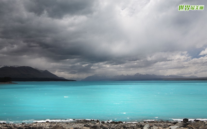 南北走向的普卡基湖,位於紐西蘭南島麥肯齊盆地北部。