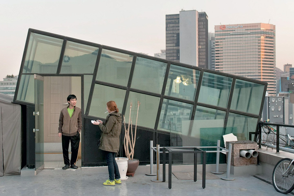 韓國,兩位在樓頂抽煙的年輕人。