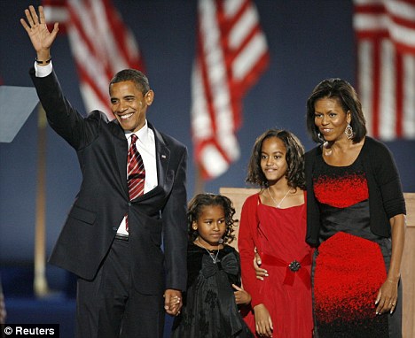 米歇爾和奧巴馬以及他們的兩個女兒(資料圖片)