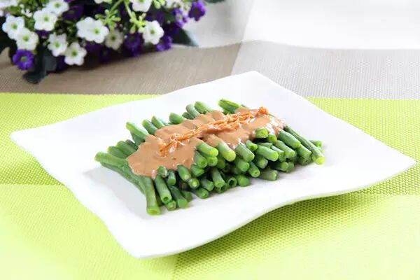 8、將調料攪拌均勻;將調料淋在豇豆上即可。