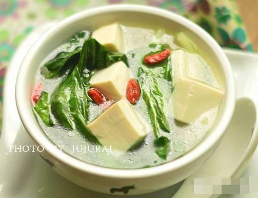 主料:嫩豆腐 (150g)、小白菜 (100g)、蒜 (2瓣)
